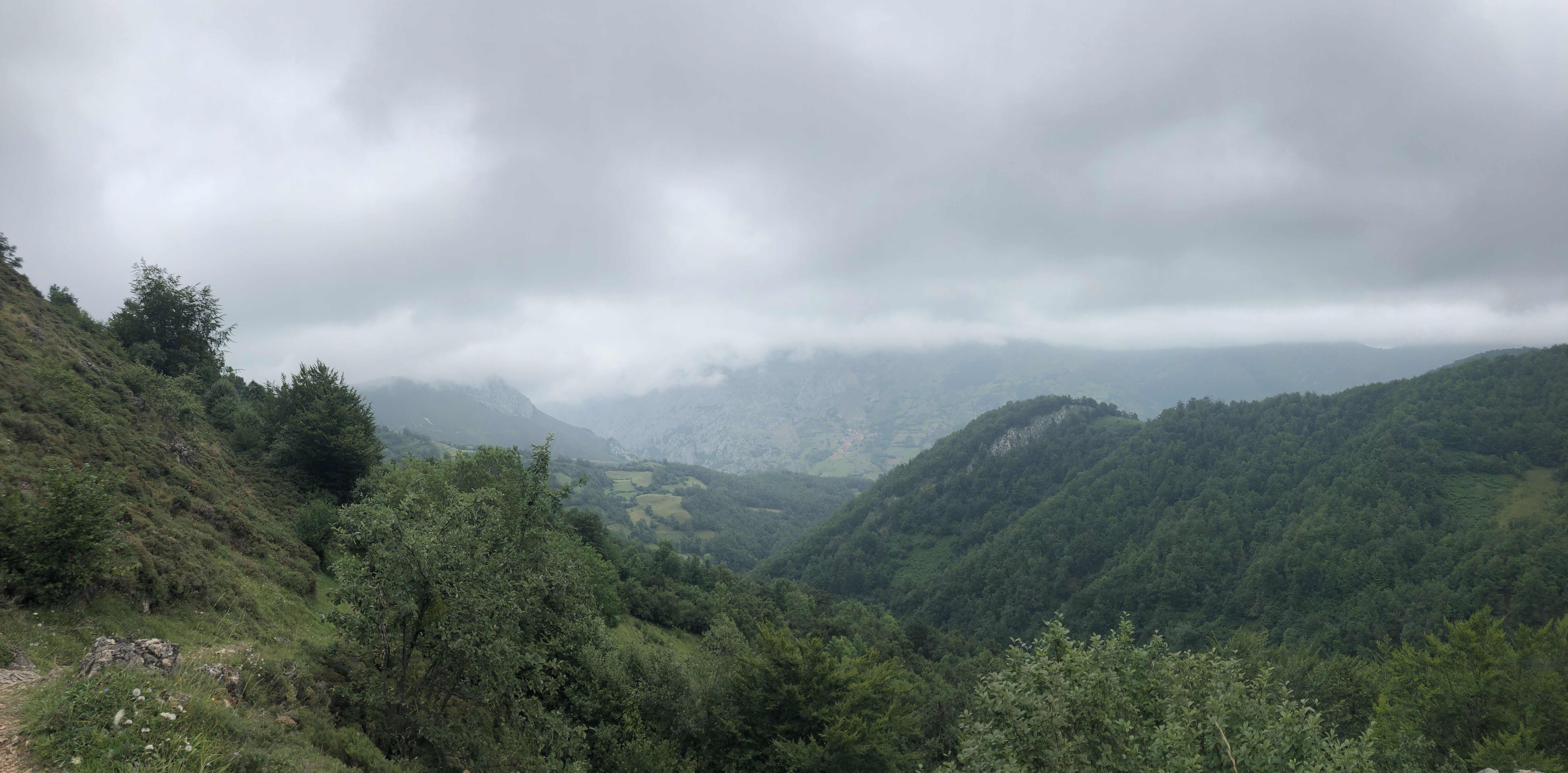 Desde el refugio de Brañagallones, donde habíamos pasado la noche, decidimos iniciar la ruta hacia el pico, y lo hicimos en el sentido contrario al comúnmente usado por consejo de Rafa, el taxista del paraíso. De este modo subes en un par de kilómetros todo el desnivel, llegas al pico, y desde alli continúas ya toda la ruta. Atravesamos la vega y sin más comenzamos una subida interminable con unas vistas maravillosas de todo el parque de redes.